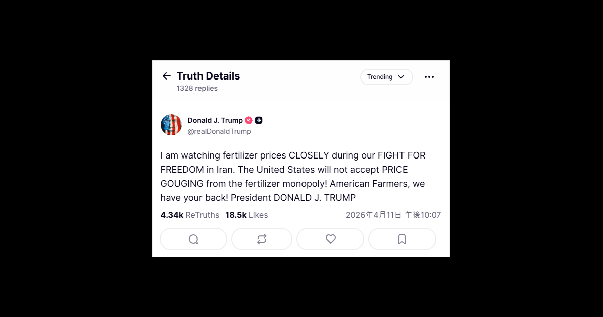 ビジネスソース:https://truthsocial.com/@realDonaldTrump/posts/116386222716690641
