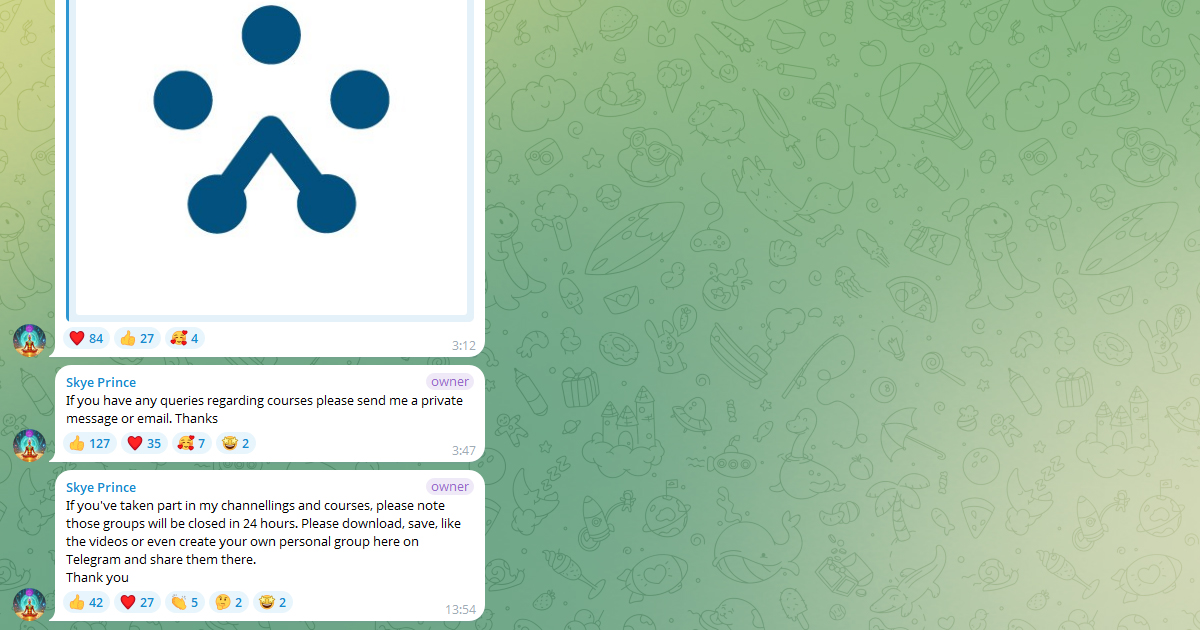私のチャネリングや講座にご参加いただいた皆様へ、これらのグループは24時間後に閉鎖されますので、ご注意ください。