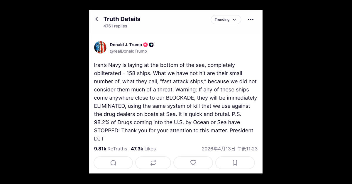 ソース:https://truthsocial.com/@realDonaldTrump/posts/116397847496142849