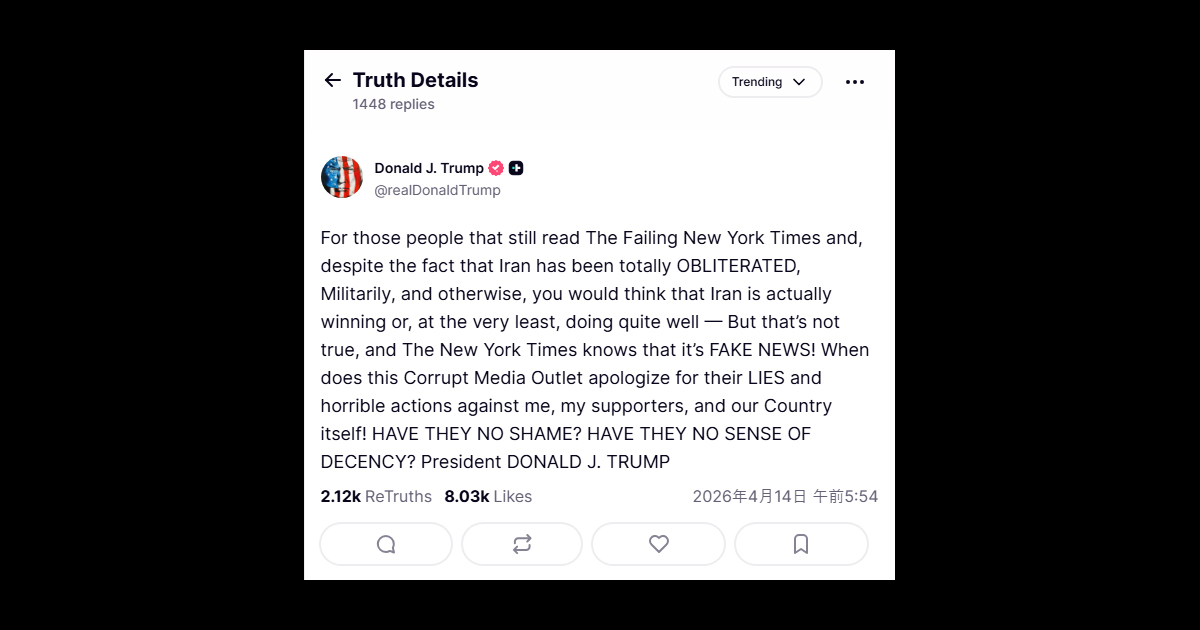 ソース:https://truthsocial.com/@realDonaldTrump/posts/116399385880639539