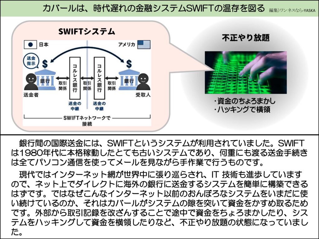 カバールは、時代遅れの金融システムSWIFTの温存を図る
