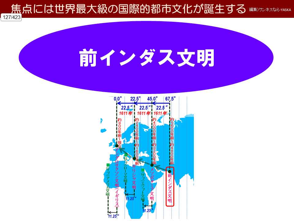 西回りスピン = 東経67.5度 = 中心はモヘンジョダロの地下