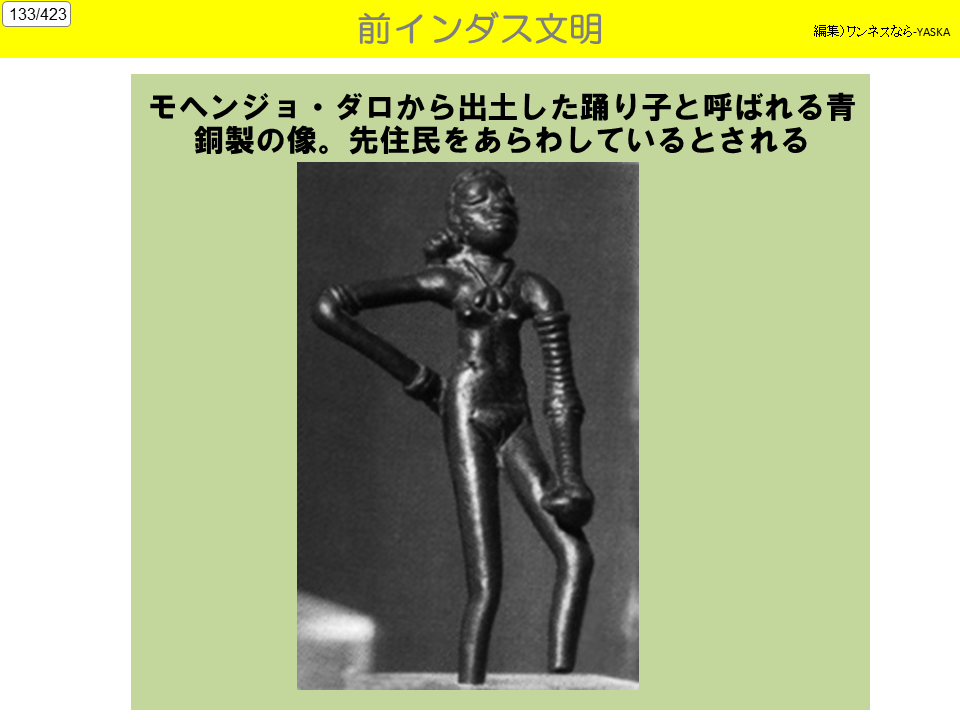 モヘンジョ・ダロから出土した踊り子と呼ばれる青銅製の像