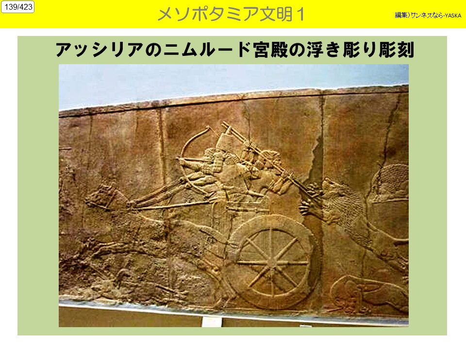 アッシリアのニムルード宮殿の浮き彫り彫刻