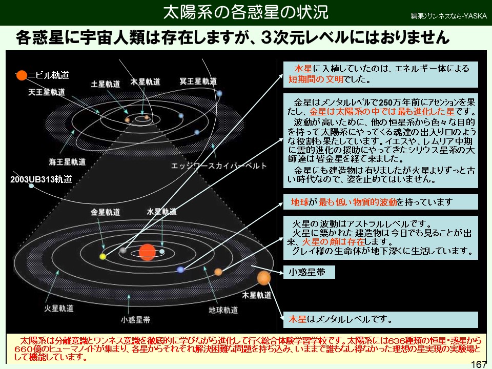したがって、太陽系を望遠鏡で覗いても、荒涼こうりょうとした人類が住めない星としか映りませんが、高次元世界では、高度な文明が開かれています。