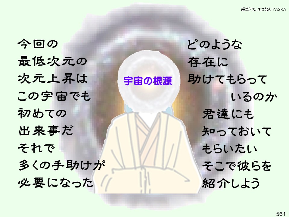 「外部の者でなく、自分が地球人として生まれ、一般の地球人に先行して意識変容することで、集合意識を変化の方向へ底上げし、地球人類が目覚めやすい環境を作れば良いのではないか、それなら宇宙の法に触れずに助けることが出来る!」