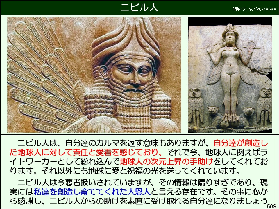ニビル人は、自分たちのカルマを返す意味もありますが、自分たちが創造した地球人に対して責任と愛着を感じており、それで今、地球人に例えばライトワーカーとして紛れ込んで、地球人の次元上昇の手助けをしてくれております。