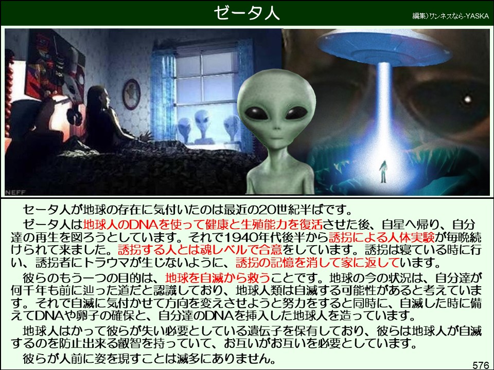 ゼータ人は、地球人のDNAを使って健康と生殖能力を復活させた後、自星へ帰り、自分たちの再生を図ろうとしています。
