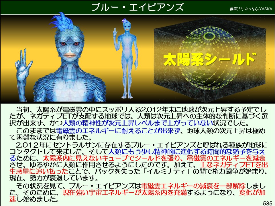 そして、人類にもう少し精神的に進化する時間的な猶予を与えるために、太陽系内に見えないキューブでシールドを張り、電磁雲のエネルギーを減衰させ、緩やかに人類に作用させるようにしたのです。